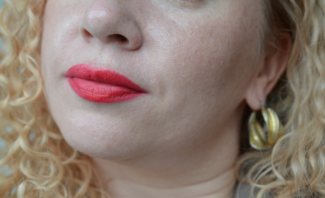 И мне нравится, что помада, несмотря на свой яркий оттенок лежит на губах легко и воздушно.