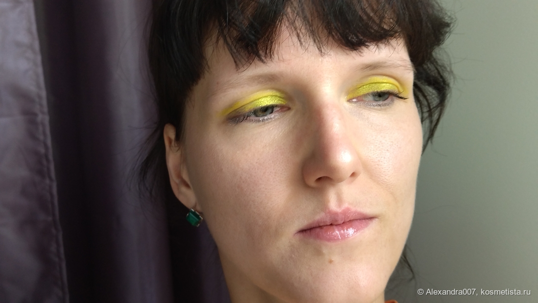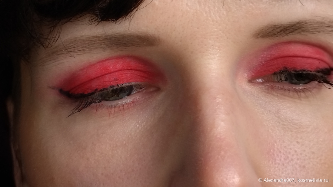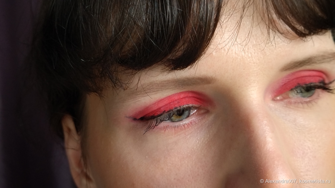 Тушуется неплохо, хотя из-за яркости огрехи более заметны, но это только на макро. Мне кажется, никто на улице не будет пристально разглядывать, как ушел ваш оттенок теней в складке или в уголочке. Сносно, но тушевать надо быстро. Пигментацию можете наблюдать сами (по мне -бомба-пушка!), и этот оттенок точно пробудет до вечера. 😃