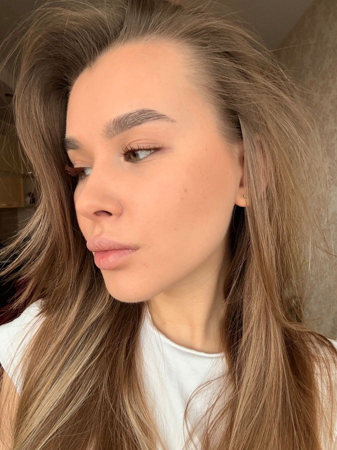 Попытка нанести микс из оттенков. Конечно, темный очень преобладает. Смотрится сухо и инородно. Мне не нравится. Тушуй — не тушуй, а итог одинаковый. Иногда он наносится удачно, но в основном… Так себе, мягко говоря.