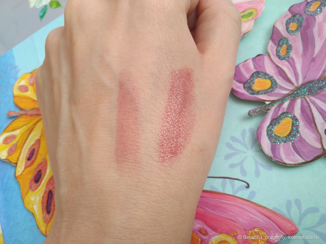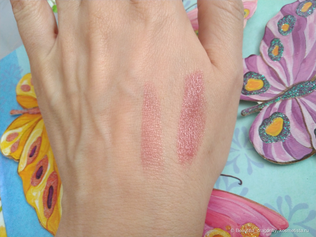 Покрытие тонкое, полупрозрачное и значительно не уплотняющееся при наслаивании помады, но всё же становящееся чуть ярче.
