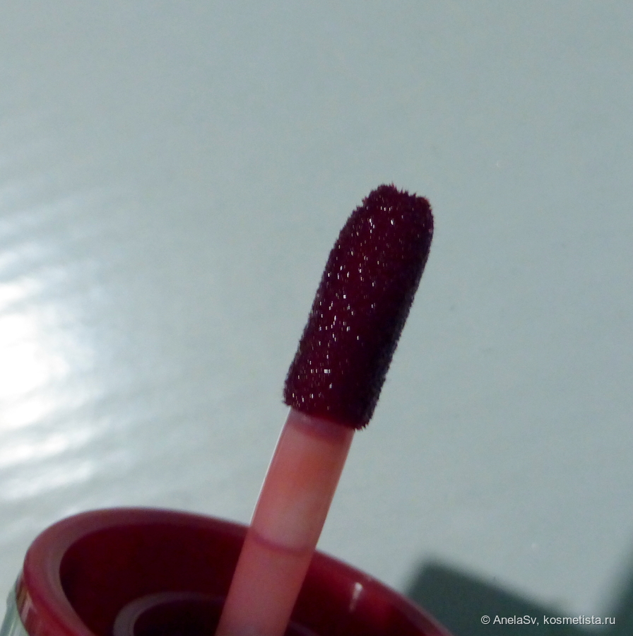Дизайн у тинтов — сплошное очарование. Прозрачные стеклянные флакончики объёмом 9 мл с крышечками, подобранными в цвет оттенка, выглядят просто чудесно. Внутри — мягкий мини-спонж-аппликатор, который аккуратно и равномерно распределяет продукт. Консистенция у средства жидкая, почти водянистая, поэтому лучше немного отжать аппликатор об горлышко флакона, чтобы не набрать лишнего. Аромат — сочный, виноградный, очень приятный.
