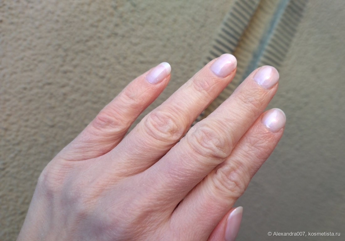Молочная полупрозрачная база с эффектом авроры. Взяла для «своих ногтей, только лучше». Но все равно пытаюсь добиться оттенка, как в бутыльке😃