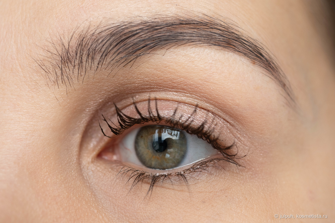 К нанесению нужно немного приноровиться, так как тени жидковаты. Использую плоткую синтетическую кисть и тушую подольше.