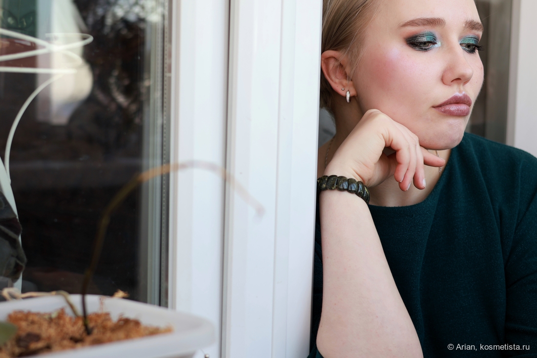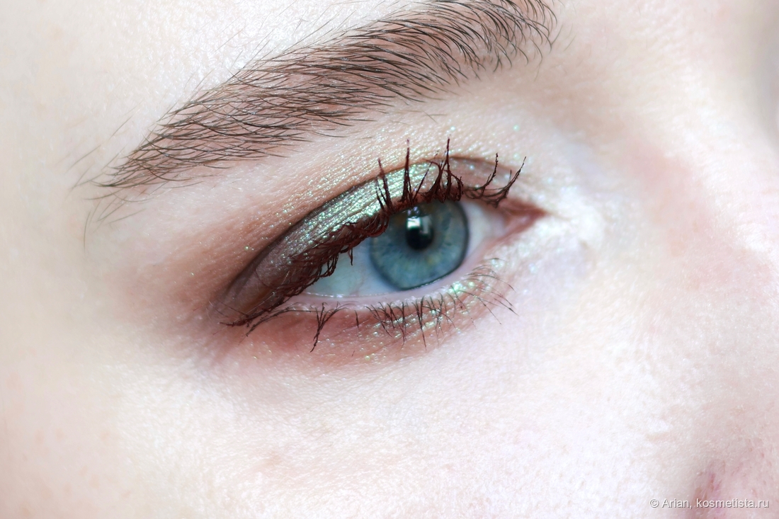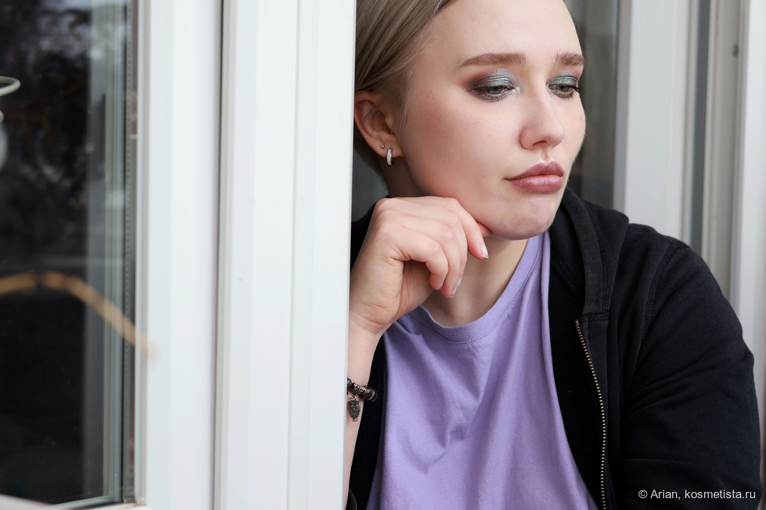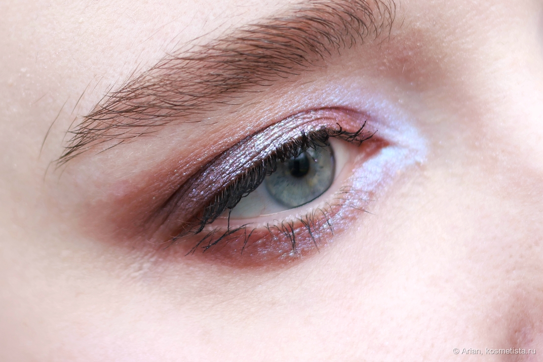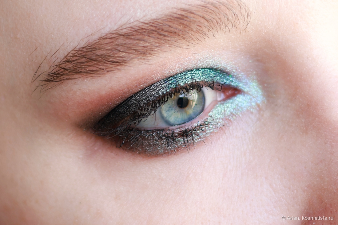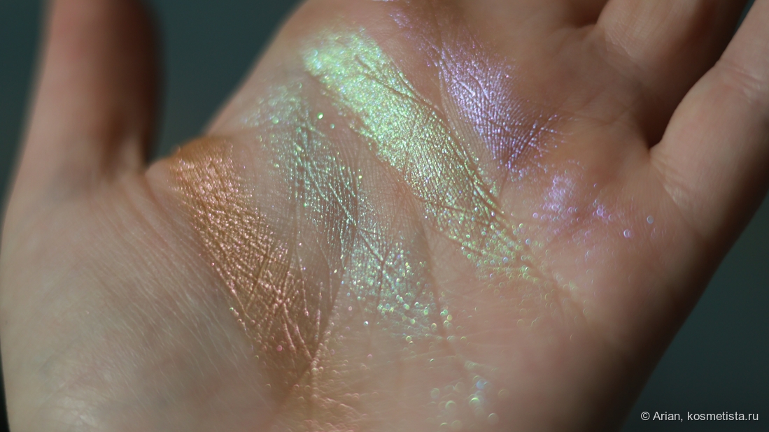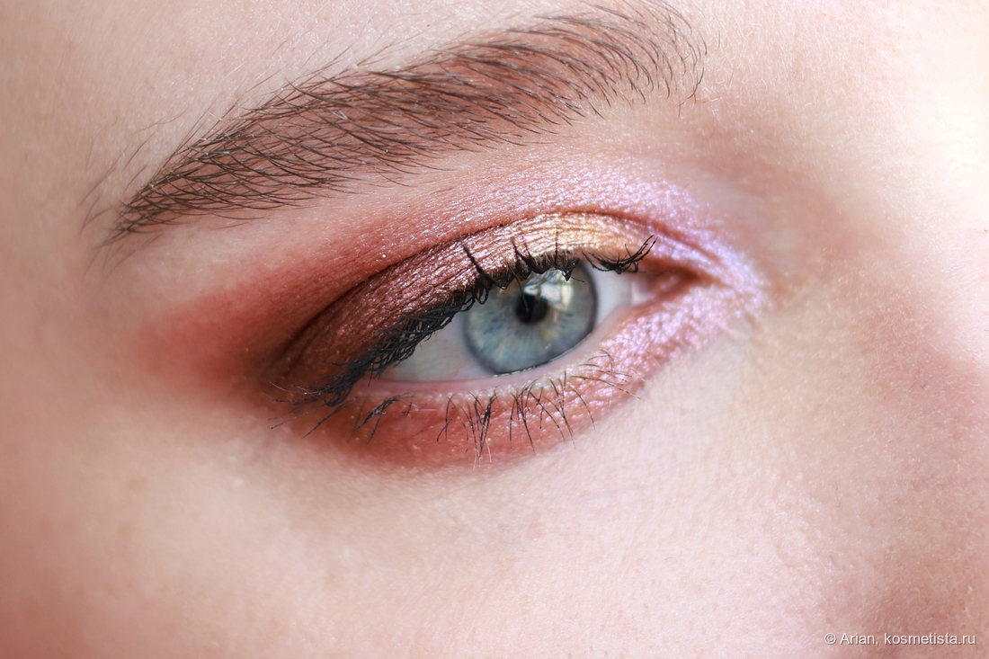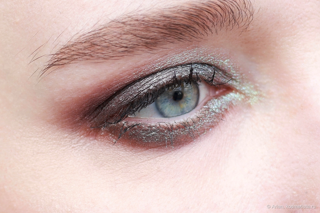По формулам: матовые очень хорошие, как и в предыдущих палетках линейки. Чуть пыльные, но меня это не смущает. Только Dark Matter, пожалуй, не слишком пигментированный, и то растушёвывается достойно. Galaxy, напротив, очень насыщенный, и всё равно проблем не вызывает. Сияющие оттенки мягкие, простые в обращении и достаточно эффектные. Однако надо иметь в виду, что у многих полупрозрачная или прозрачная база. Зато блёстки в процессе носки не осыпаются.