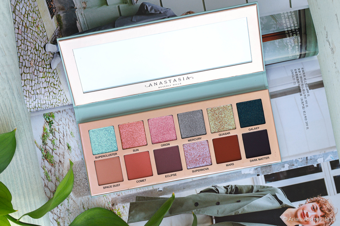 Всем привет! В этот раз покажу третью свою палетку из новой линейки палеток Anastasia Beverly Hills. До этого рассказывала о Nouveau (моя любовь) и Rose Metals, но pi4y4y как-то раз отметила, что мне очень пойдёт ещё и Cosmos Palette. Собственно, об этой гамме и речь.
