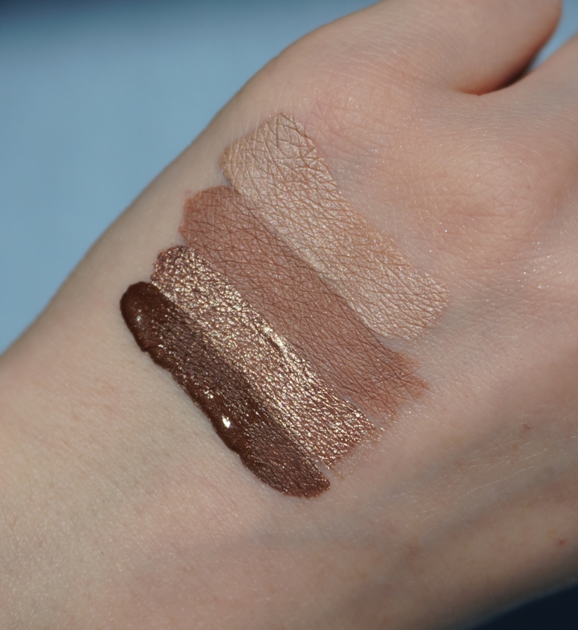 Текстура у теней кремовая. Носятся и распределяются они великолепно, но… Очень быстро фиксируются. Буквально пару секунд и все… Их никуда не сдвинуть.(Зато не скатываются держатся целый день.)