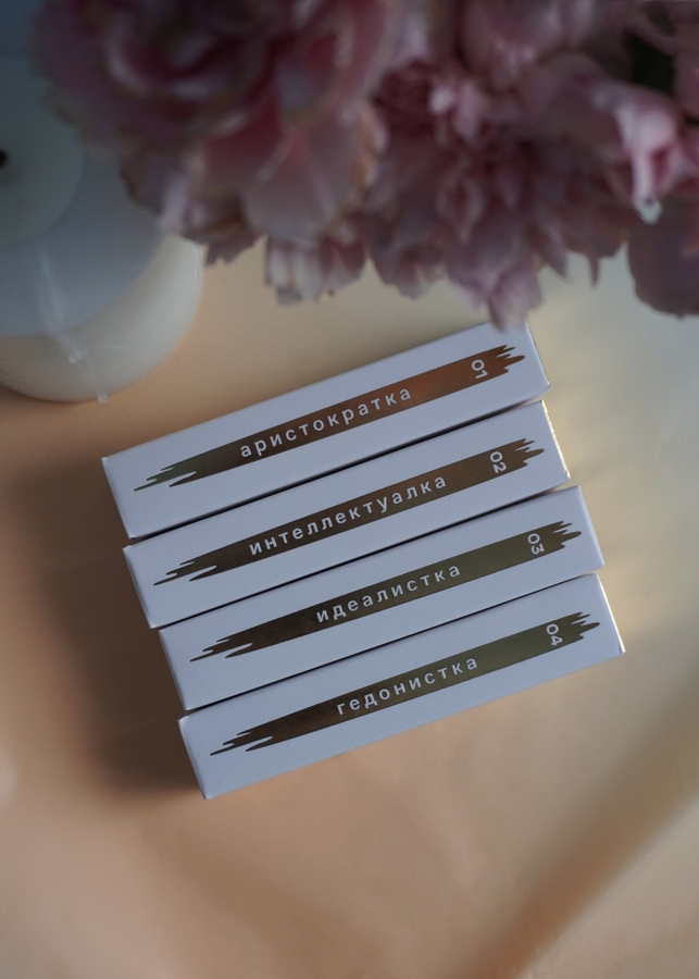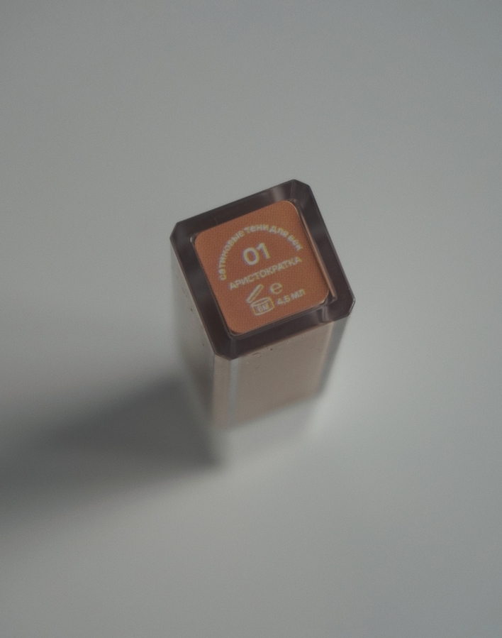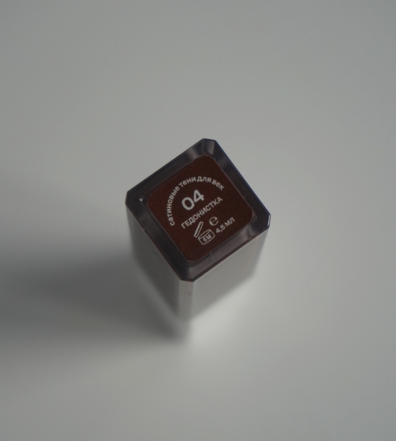 Приезжают тени в тактильно приятных картонных коробках, на которых помимо всей необходимой информации о товаре есть также и QR-коду, открывающий доступ к видеоурокам звёздного визажиста.