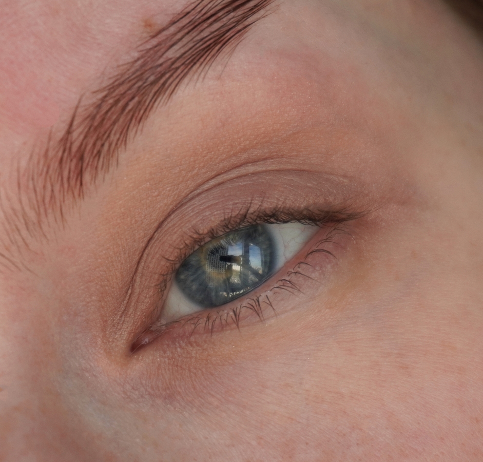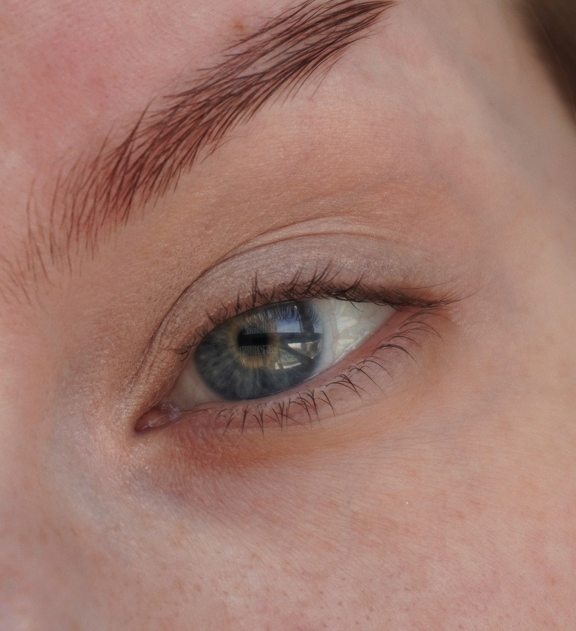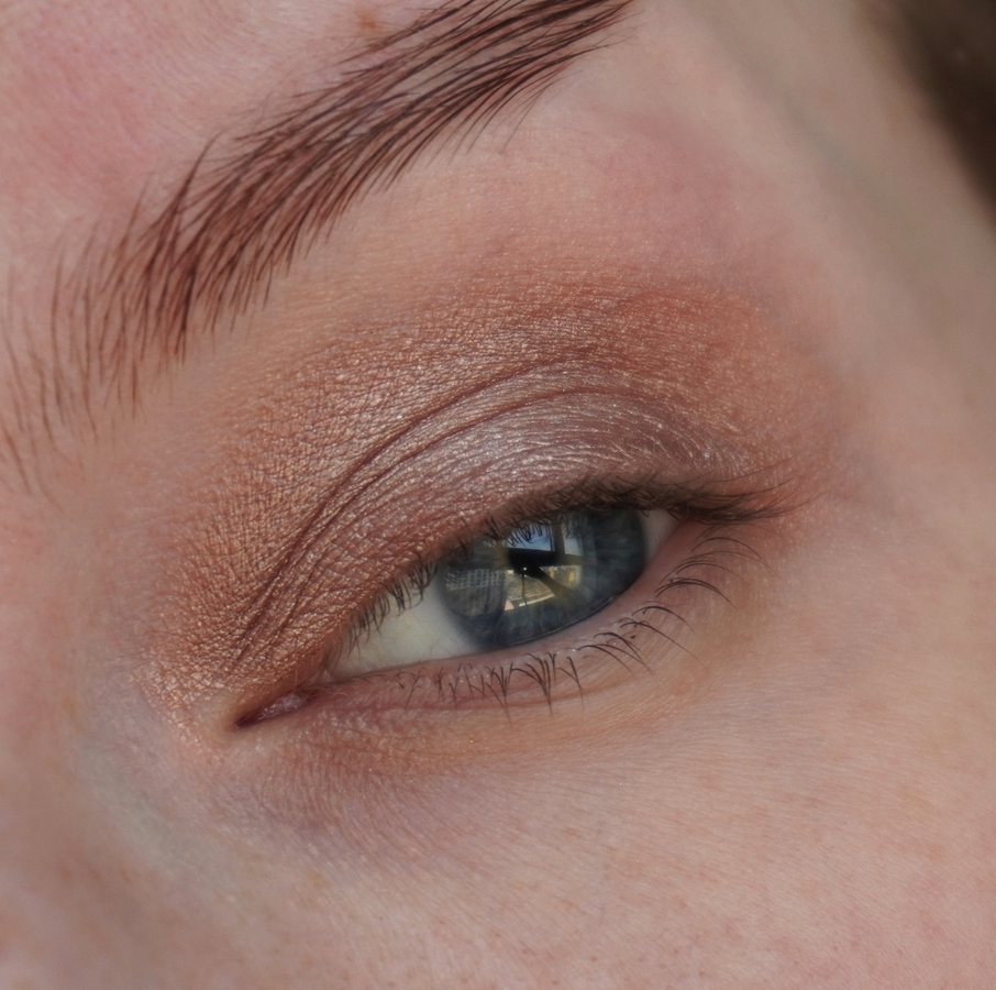- Золотисто-бежевый оттенок с более заметным сиянием. Создает свечение, мгновенно “зажигающее” любой цвет глаз.