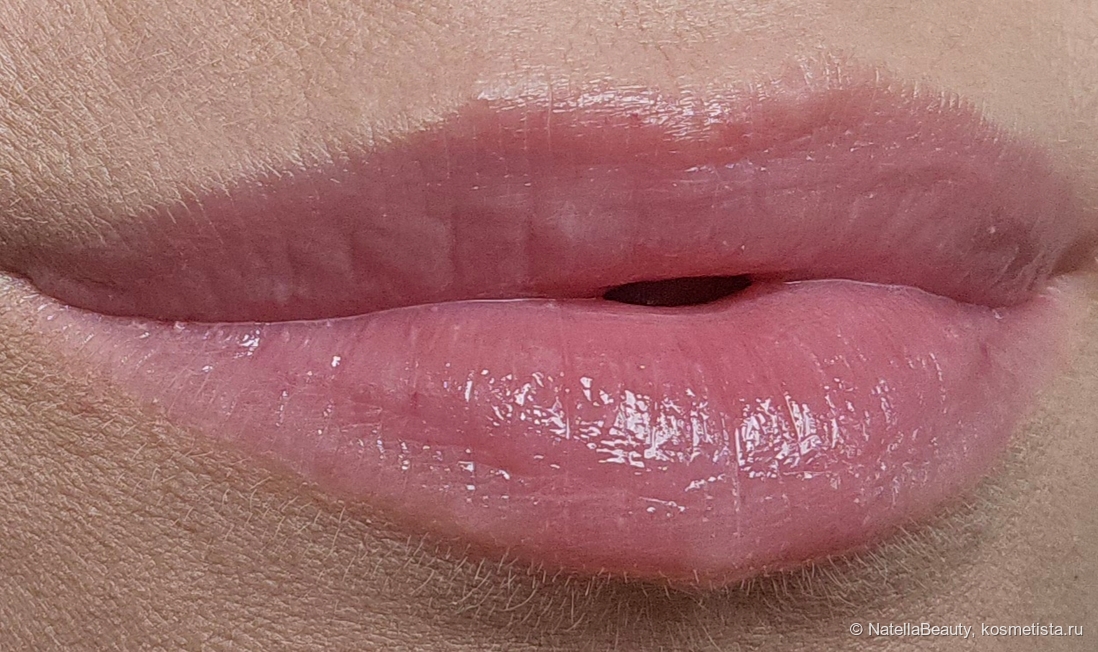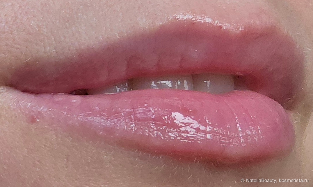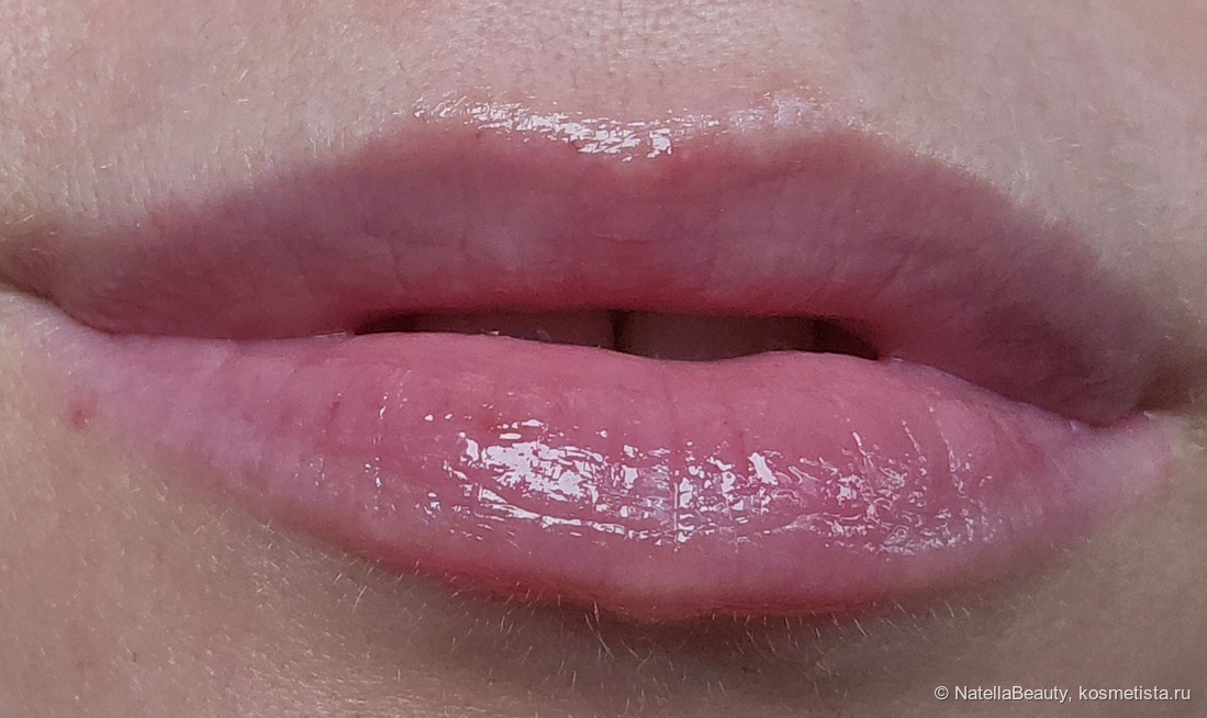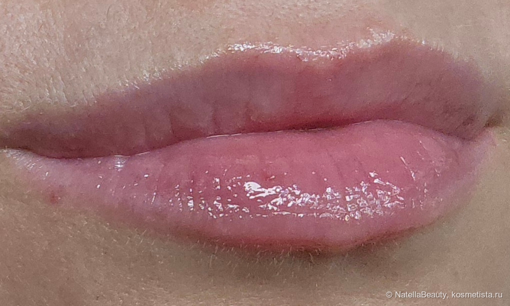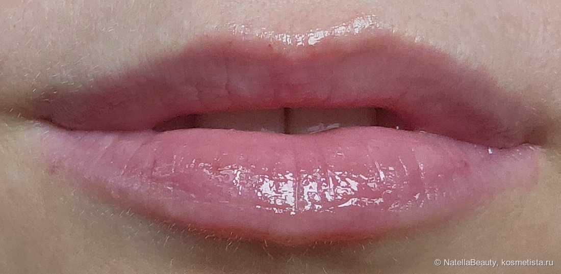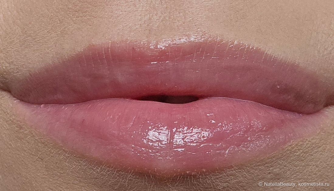 На губах лежит комфотно, нет ощущения пленки, липкости, жирности или тяжести. Выглядит натурально.