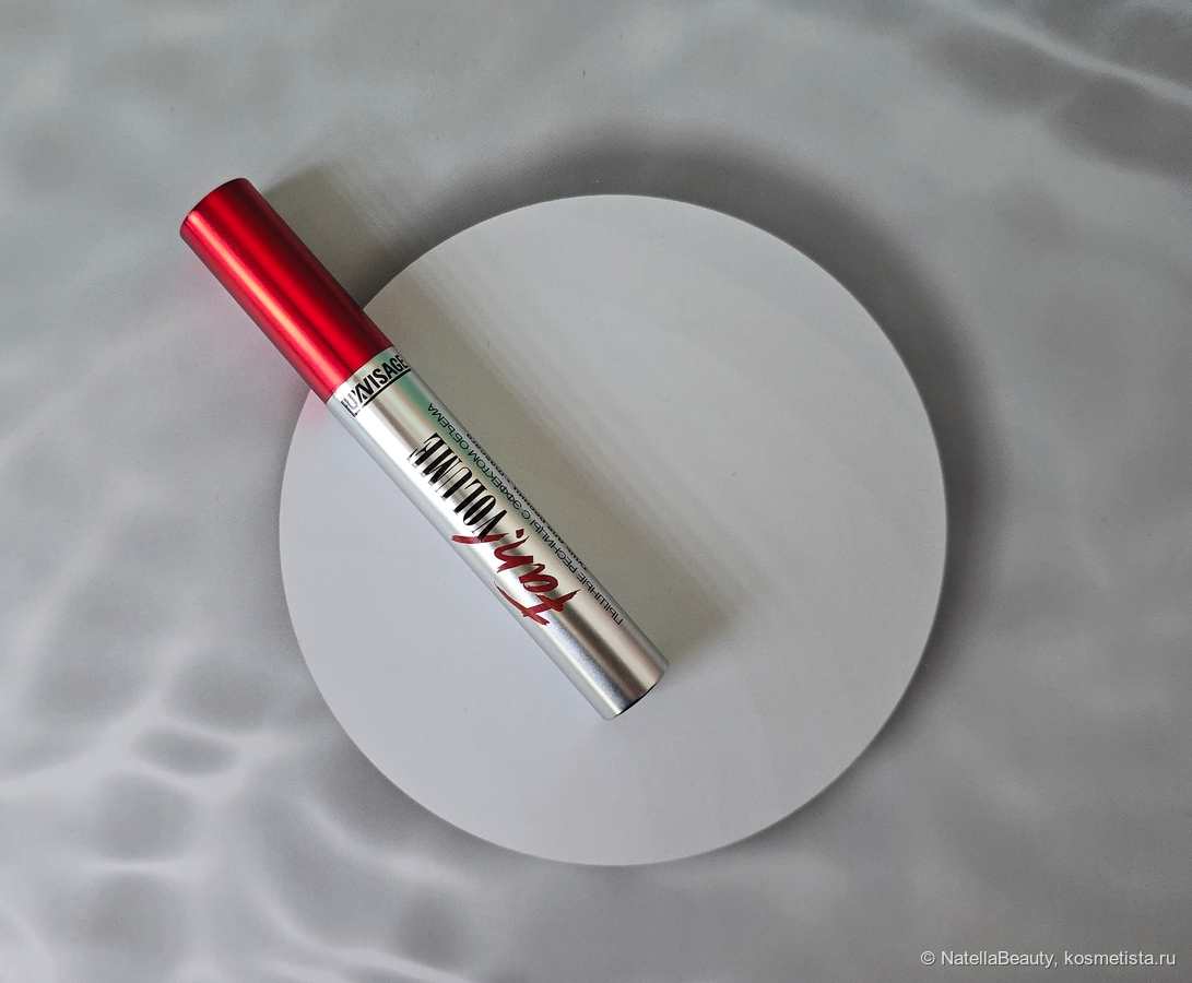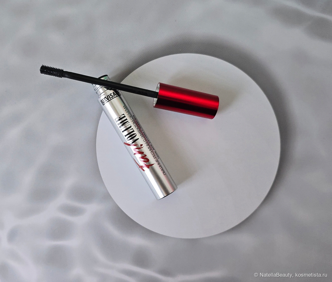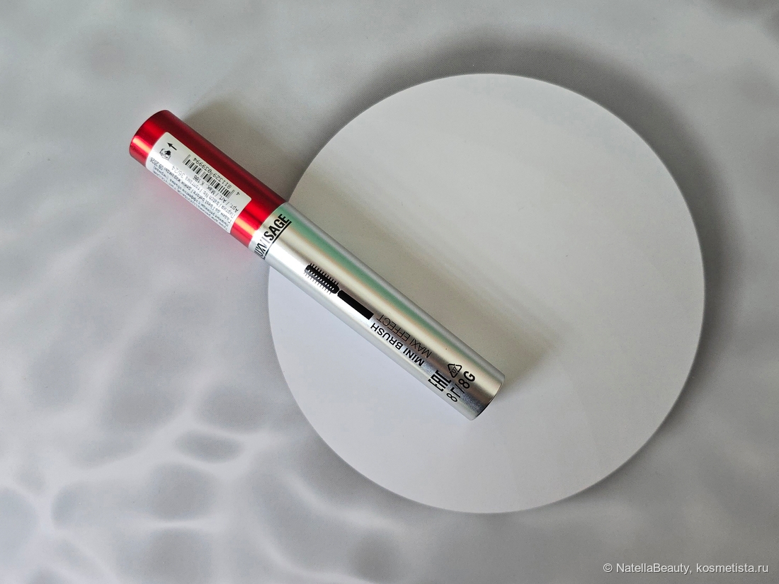 Тушь находится в серебряной флакончике с ярко-красной крышечкой и надписью. Выглядит стильно, ярко и даже гламурно. Сзади на флакончике есть изображение ожидаемой щеточки и эффекта. На крышке стикер со сроком годности и информацией о продукте.