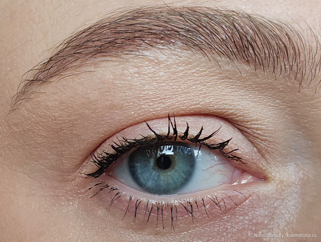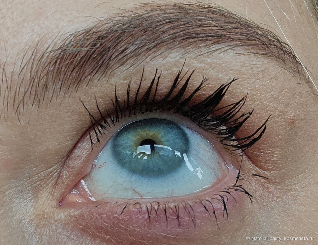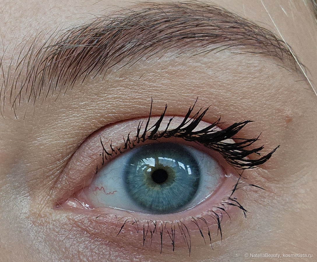Тушь ложится густо, буквально жирным слоем, склеивает ресницы в сосульки.