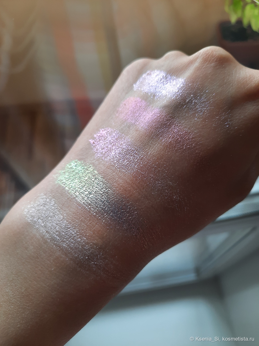 Можно использовать как соло, так и как дополнение к макияжу, т.к. призматики придают макияжу глаз невероятный перелив и сияние.