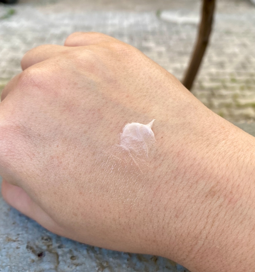 Туба — мягкий пластин. Крем — средней плотности, немного похож на зубную пасту, но мягче по консистенции. Выдавливается с трудом, разносится с усилием, но кожа становится такой напитанной, что я могу только похвалить этот крем.
