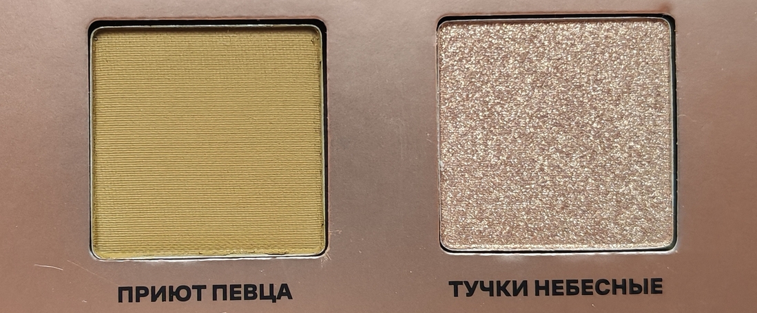 Матовые совсем немного пыльноваты. Растушевать можно в дымку, легко наслаиваются. Тени не залипают, не тускнеют, отлично набираются на кисть.