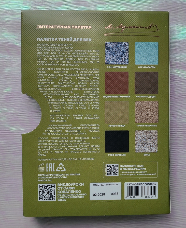На обратной стороне коробки написана информация о продукте и показаны оттенки, которые нас ждут внутри.