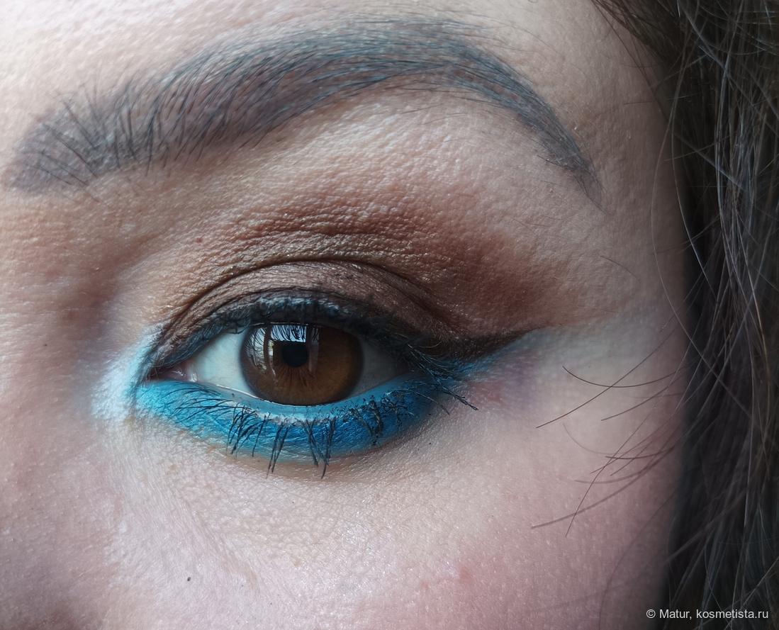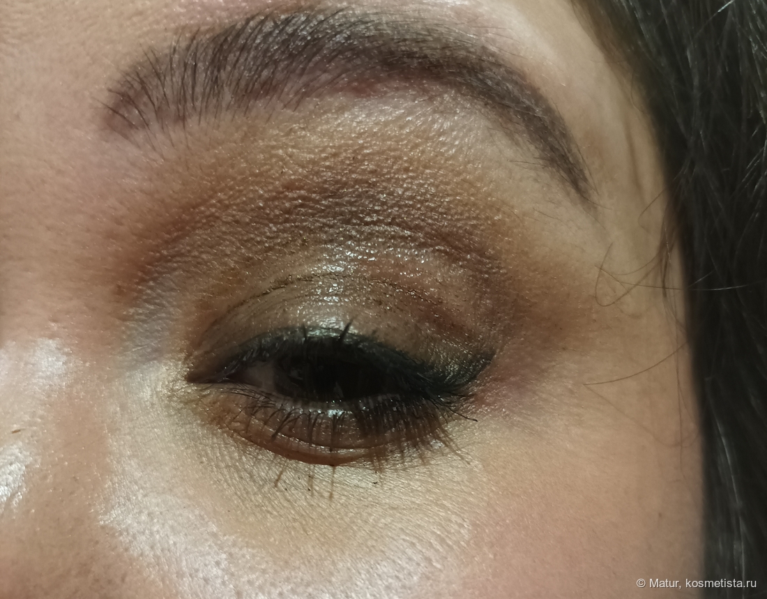 Тени погуще нанесла на подвижное веко и на внешнюю половину нижнего века, затем синтетическим факелом растушевала в складке века и всё, минимум усилий и довольно эффектный макияж готов.