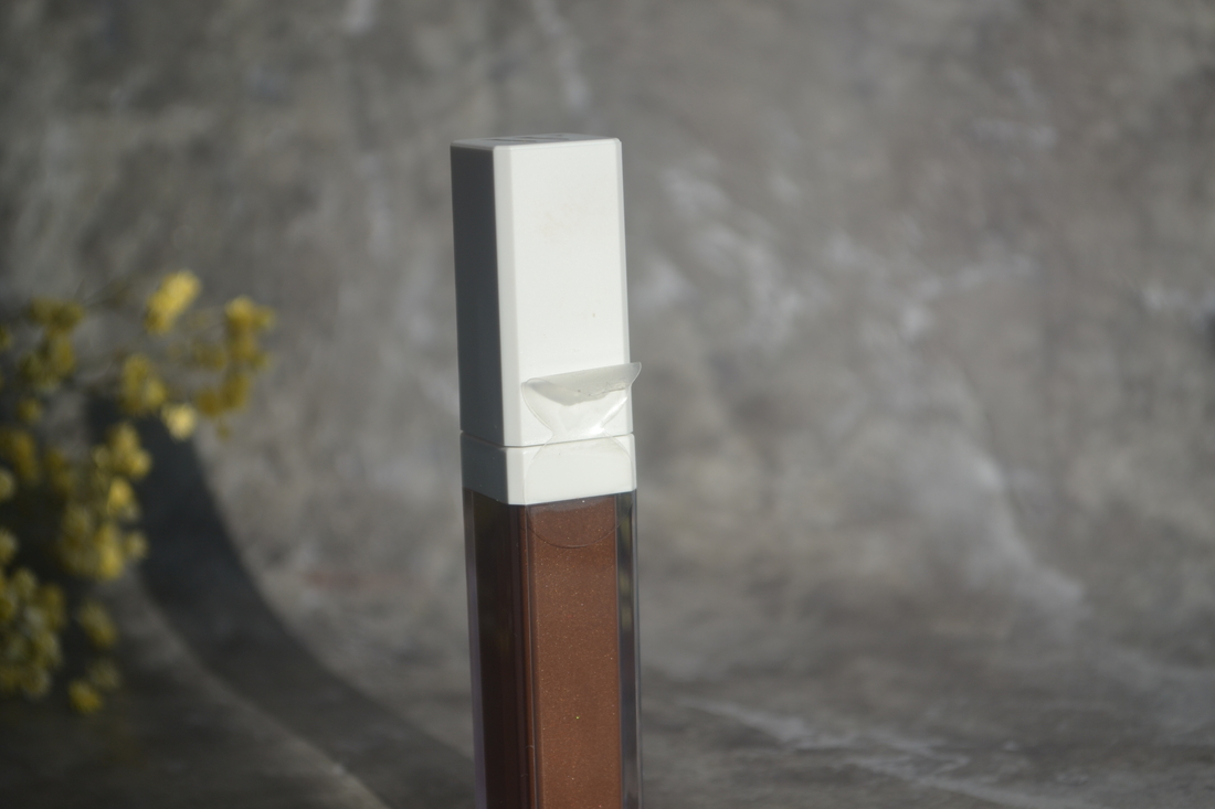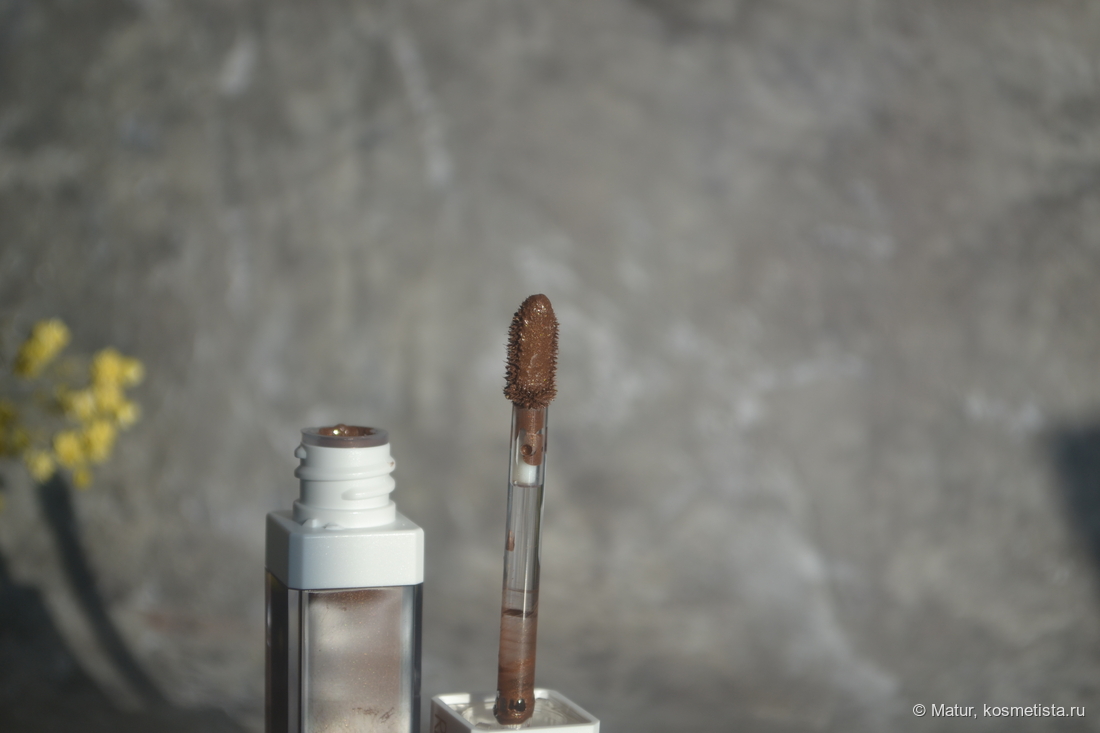 Это нейтральный и даже чуточку холодный коричневый оттенок, насыщенный, плотный, с множеством микроскопических разноцветных блесточек.