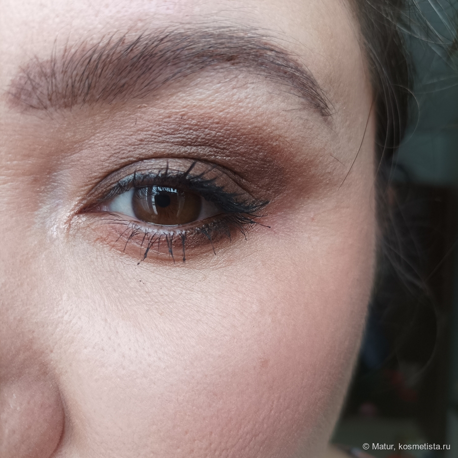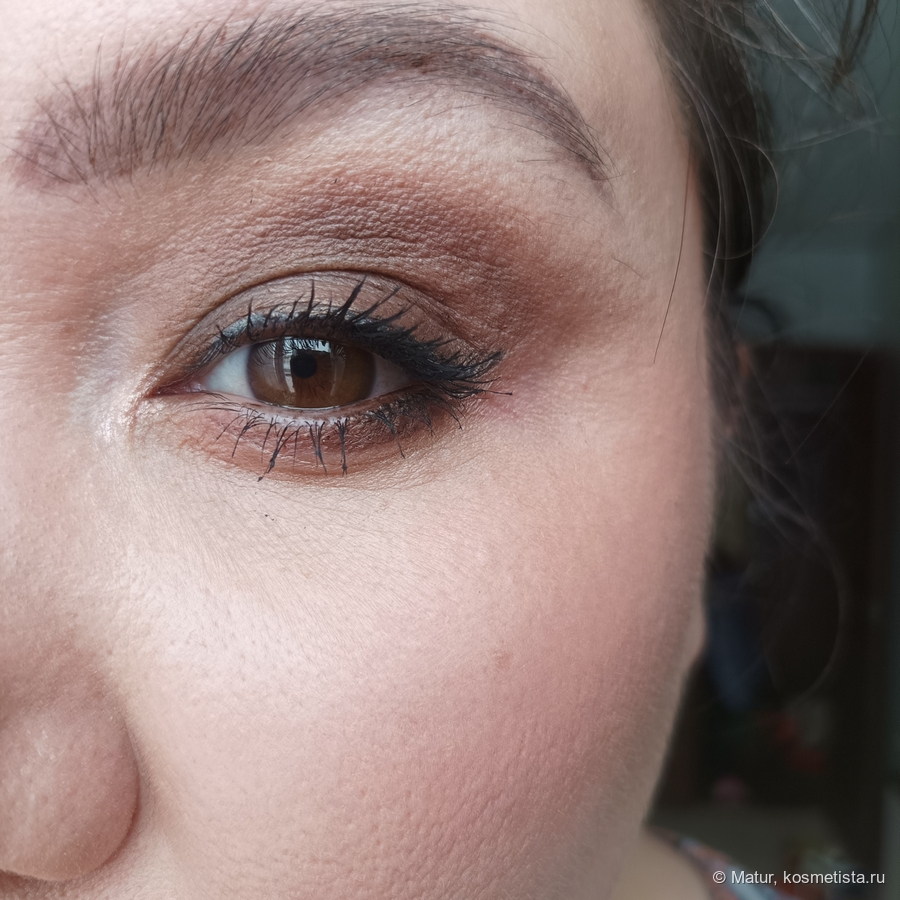 Применение. Оо, это идеальные тени для быстрых макияжей: наносишь на центр века, быстро тушуешь и всё, далее крашу ресницы и макияж готов. Кстати, конкретно этот оттенок отлично подходит для затемнения складки века, несмотря на то, что он сатиновый. Покажу как это выглядит в деле