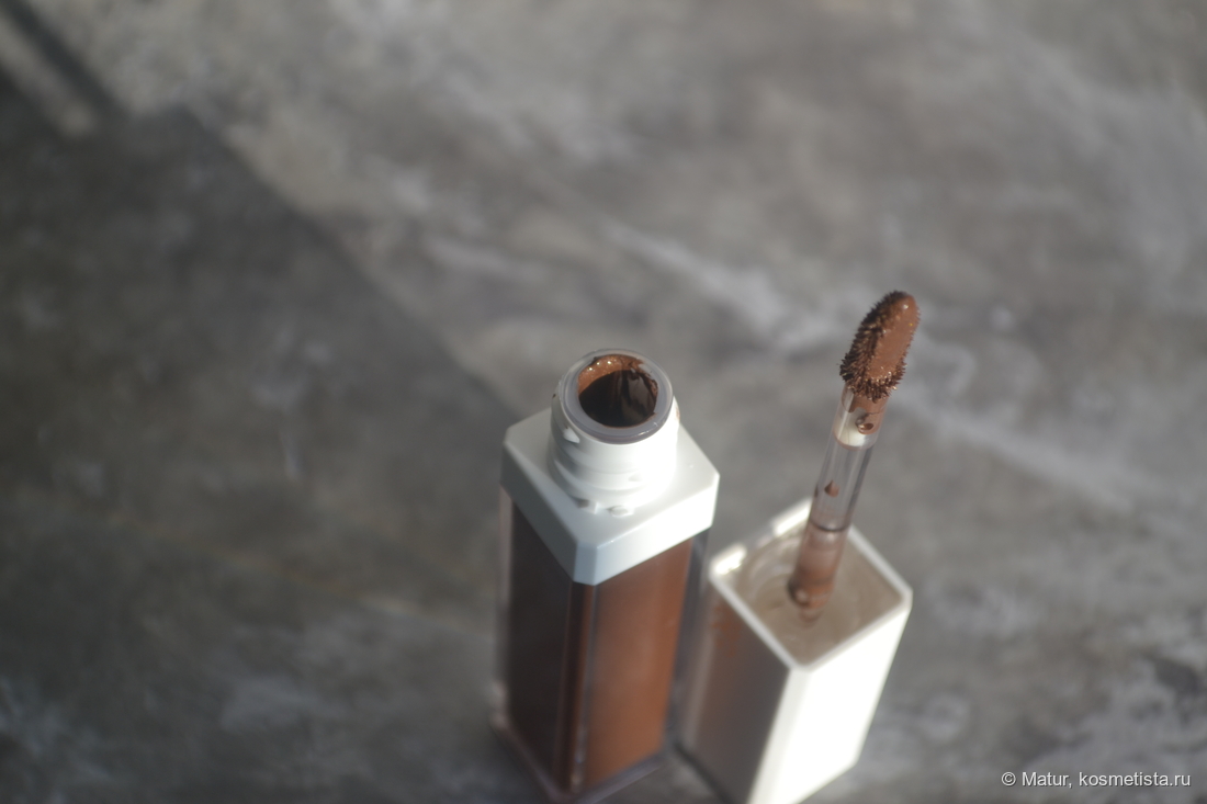 Аппликатор ворсистый, уплощенный, в целом удобный, но я им только переношу продукт на веко, а тушую уже своими кистями.