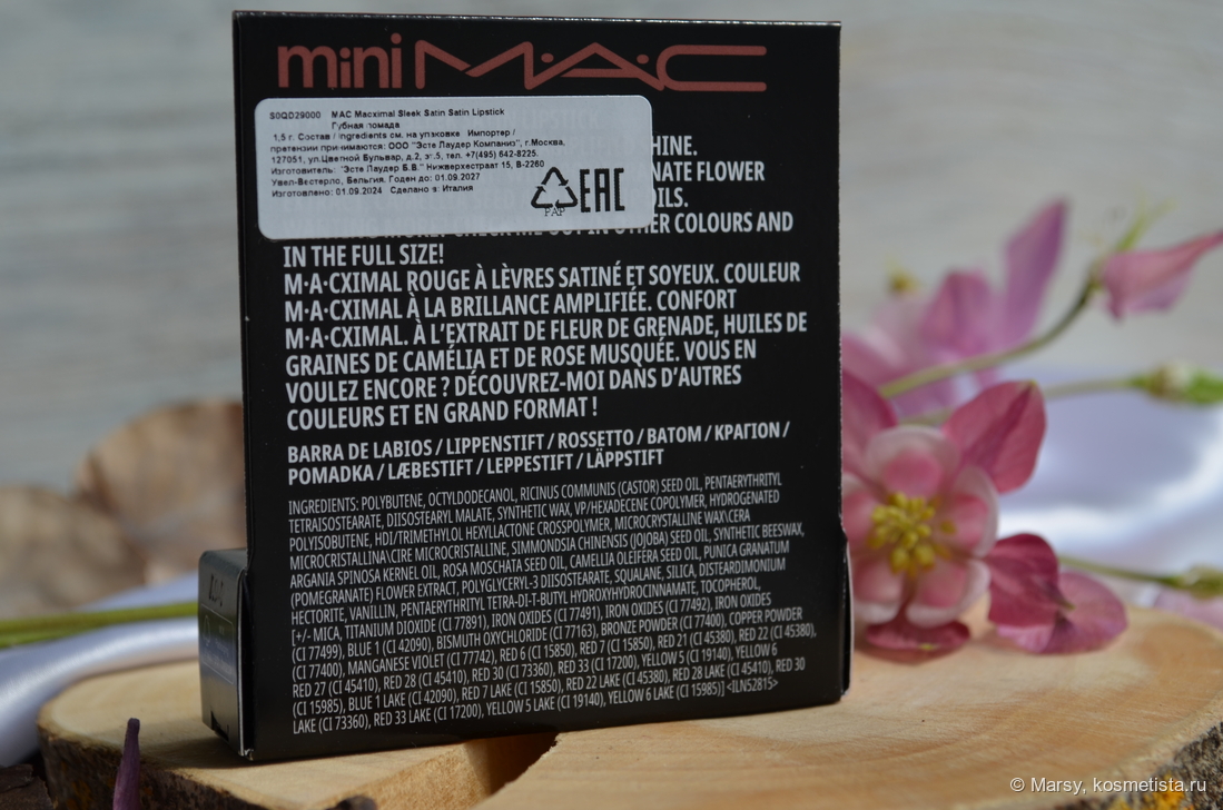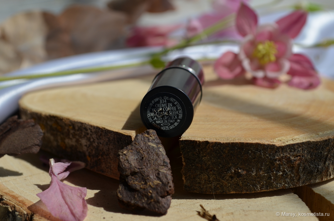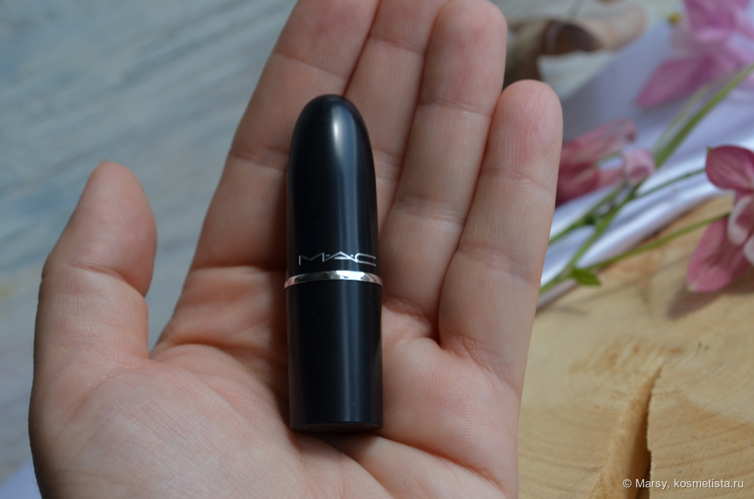Про оформление писать не буду, тут все понятно и видно. У меня мини формат. Это помада из новой линейки MACXimal, текстура Sleek Satin.