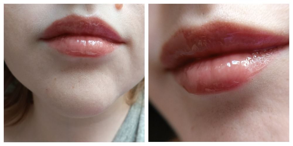 На губах это прямо слекло. Масло обволакивает весь рельеф, сглаживает его максимально. Сверкает и переливается без единой блестки. Масло комфортное, в какой-то степени ухаживает за губами. Не как бальзам, но для декоративного средства просто отлично.