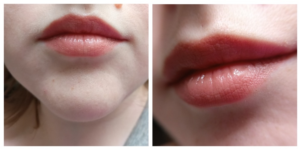 Мне захотелось показать, как будет выглядеть масло, нанесенное поверх матовой помады. Получилось очень круто, при этом масло легко поверх, не растворяя нижний слой из матовой помады. Продукты хорошо контактируют друг с другом. Пирог не смазывается и не течет с губ.
