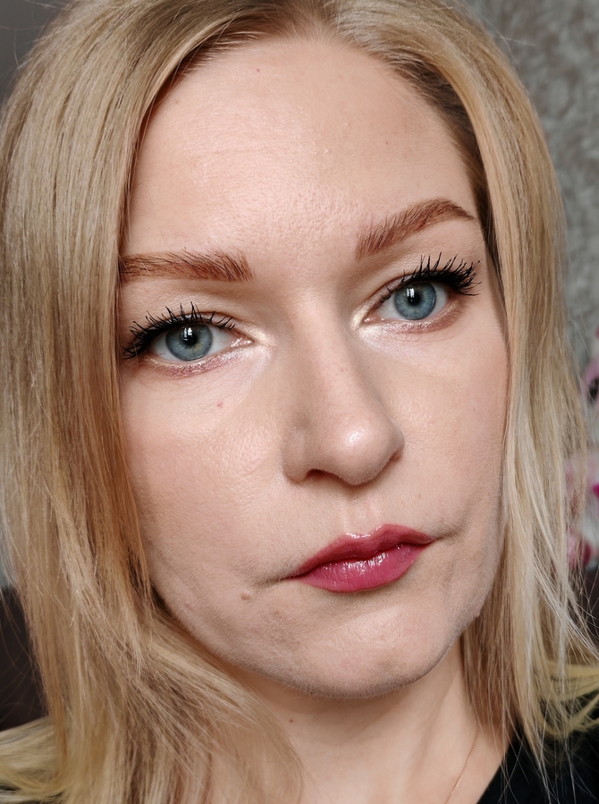 ПС. У вас очень красивые глаза 👍 и цвет блеска на губах хорошо вписывается в общий макияж!