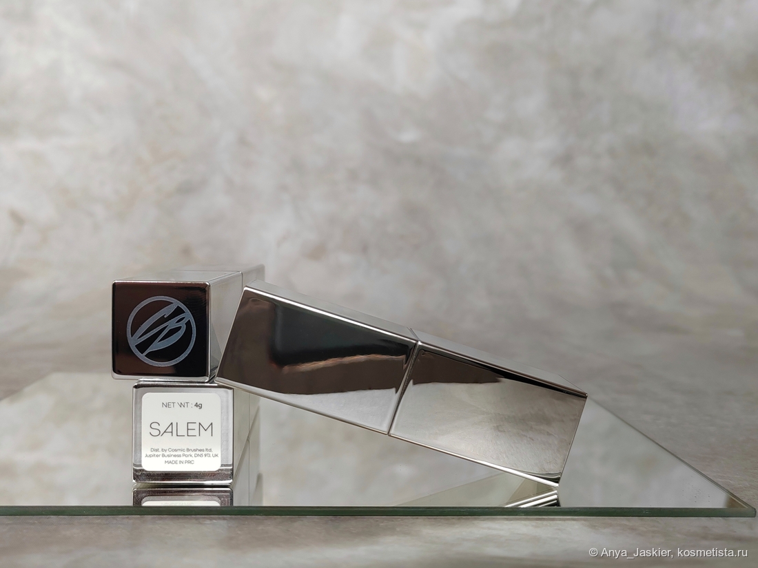 Помады были упакованы в индивидуальные картонные коробочки черного цвета, ни одна из которых не дожила до обзора (ибо все они порвались при первом открытии). Футляры идентичные, из серебристого пластика, различаются лишь наклейками с названиями оттенков. Лично мне неудобно, я все время хватаю не ту помаду — предпочитаю более явные различия в футлярах (хотя бы наклейки в цвет помад, а то провести верную ассоциацию от названия к цвету — та ещё задачка). Но стоит признать, с помадами у бренда получилось лучше, чем с румянами, которые разлиты в три абсолютно идентичных футляра без малейшего намека на различие (гарольд_боль.гиф). Пластик собирает на себя царапки и отпечатки, а из-под отбившейся краски выглядывает неприглядный серый. Потрепались у меня не только носимая в рюкзаке Clarice, но и лежащие в тумбочке Salem и Nancy. Футляр имеет вес, его приятно держать в руке. Крышка закрывается на магнит (забавный эффект: из-за магнитов помады отталкиваются друг от друга и вплотную друг к другу их поставить невозможно). Стик каплевидный, его вполне комфортно использовать. 4 грамма продукта предлагают использовать за 12 (насколько помню) месяцев. На сайте бренда есть пометка Vegan & Cruelty Free. Made in PRC.