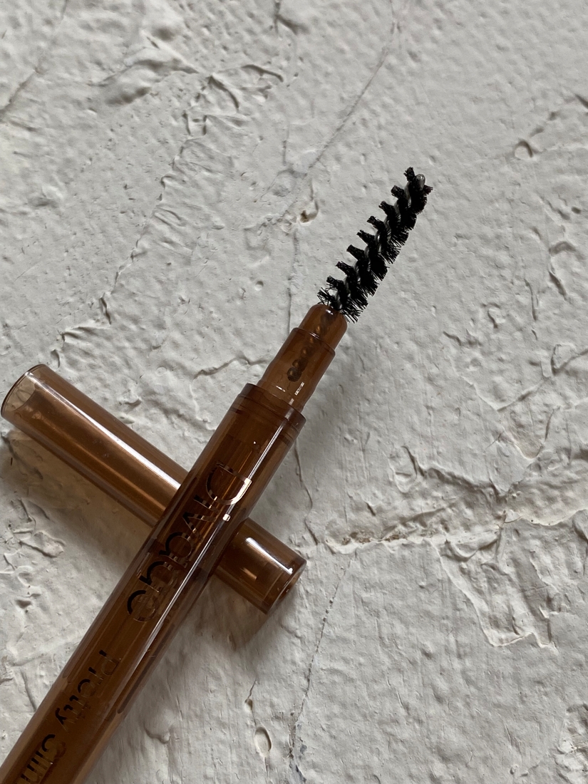 Это автоматический карандаш: с одной стороны тонкий стержень, с другой — удобная в меру мягкая щеточка, которая позволяет убрать излишки цвета и прочесать волоски.