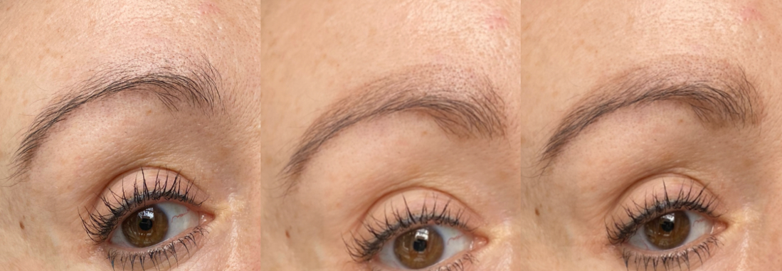Так выглядят брови (слева направо): «голые», с карандашом, с карандашом и маркетом.
