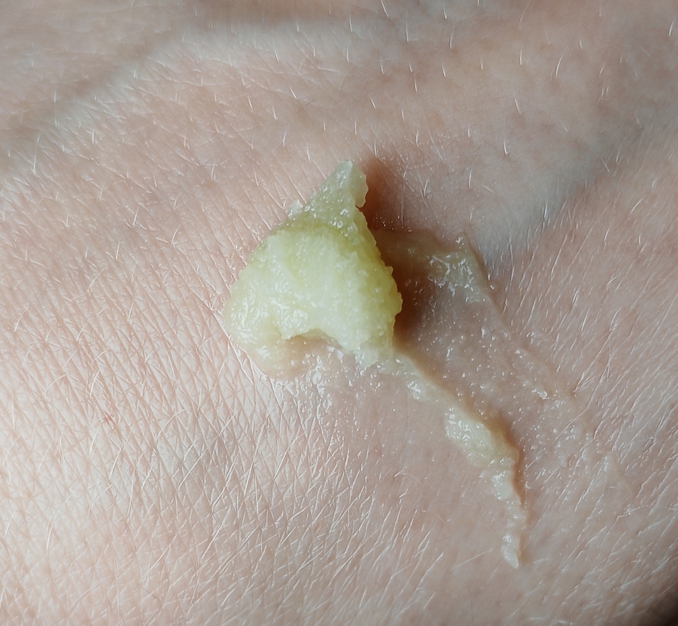 В банке текстура выглядит довольно плотной. Бальзам легко извлекается лопаткой или пальцем.