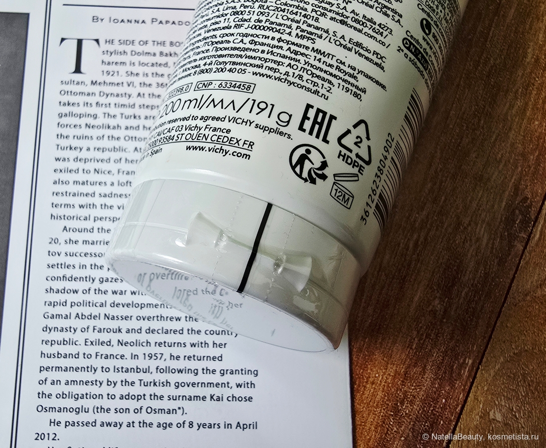 Маска находится в пластиковой тубе белого цвета с коричневым цветовым оформлением. Туба мягкая, закрывается пластиковой крышкой флип-топ. Изначально туба запечатана защитной слюдой.