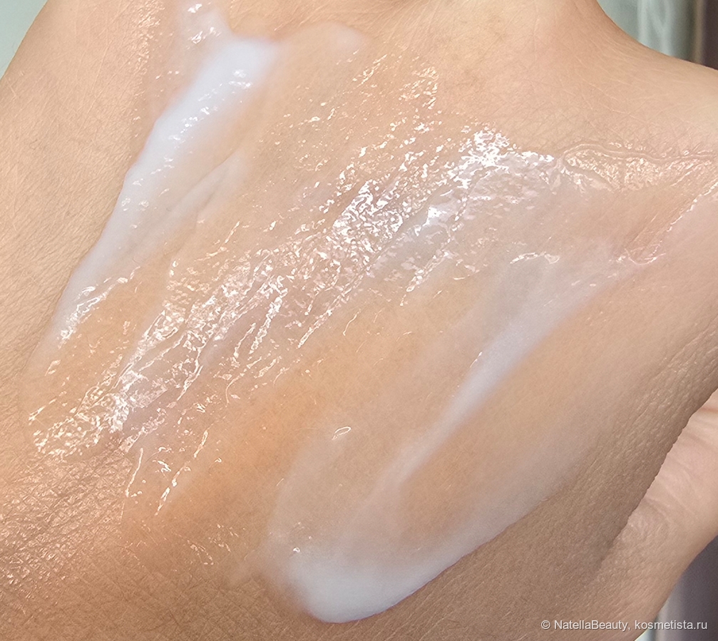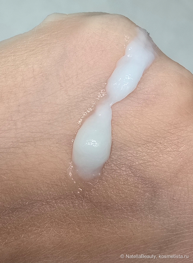 Текстура не сильно густая, но и не жидкая, ближе к бальзаму для волос.