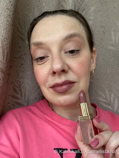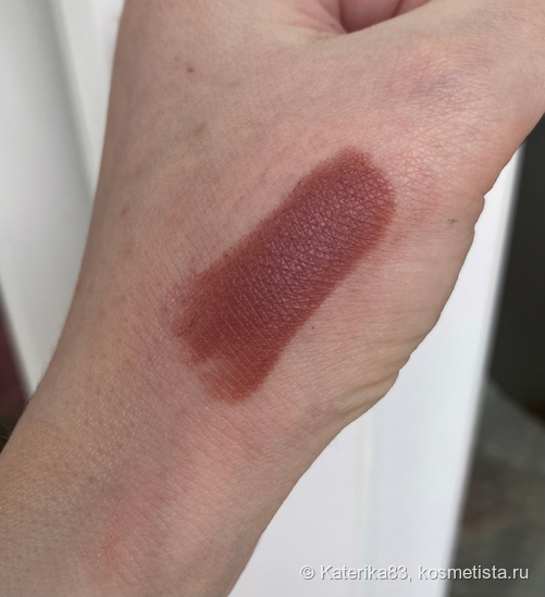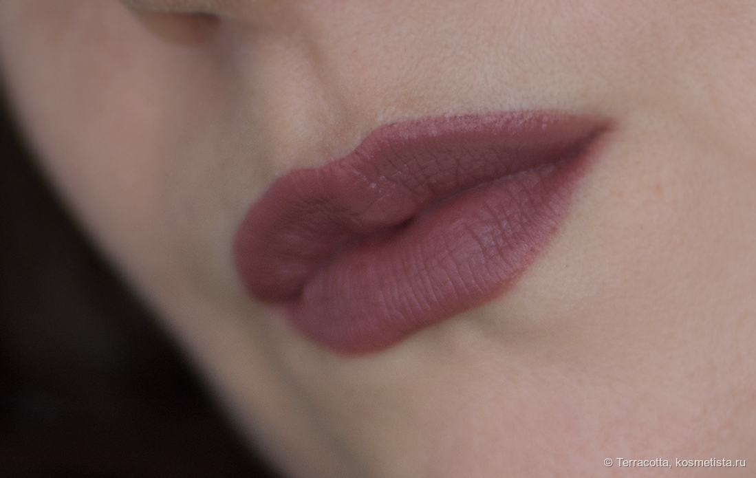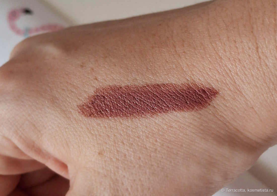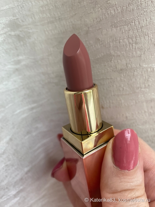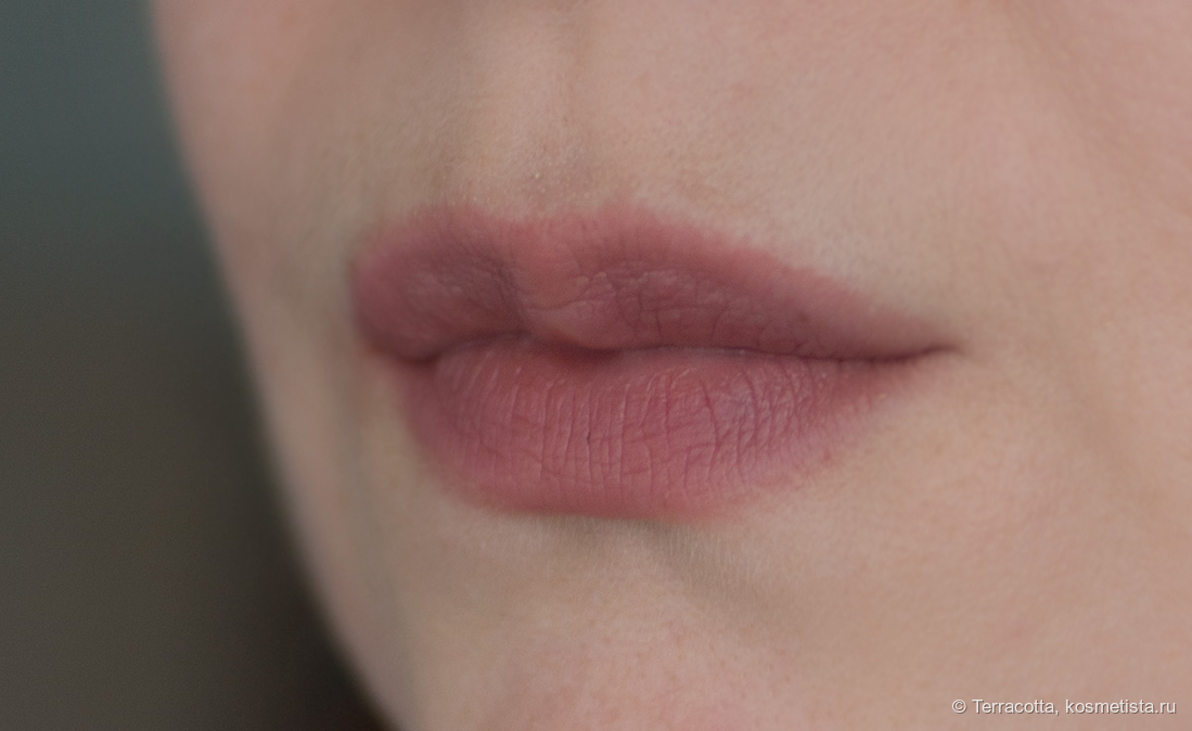 Помада классической кремовой текстуры, хотя заявлена как матовая. Конечно, это не глухой матовый, скорее что-то среднее между глянцевой и матовой.