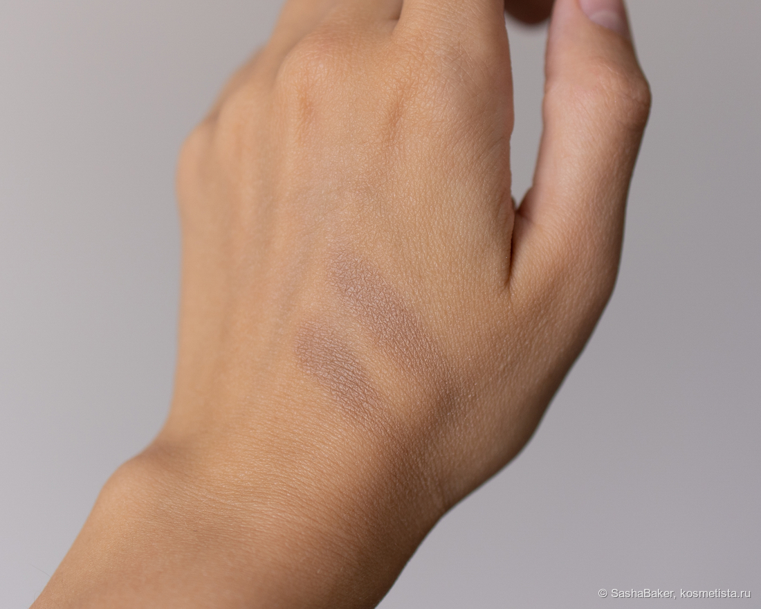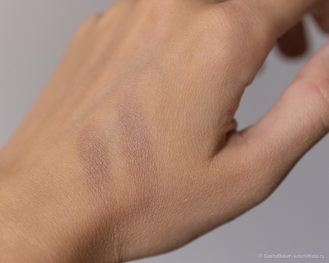 Главное достоинство продукта — аристократичный подтон, цвет зимнего неба перед рассветом, это делает его идеальной тенью, способной лепить форму на любой коже. Он не красит, а моделирует, но добавляет не серый, а живой оттенок тени, как будто кинули ложку светлого бронзера. Мой оттенок кожи отнюдь не белый, не светлый, это тоже стоит учесть. При наслоении выходит больше теплоты.