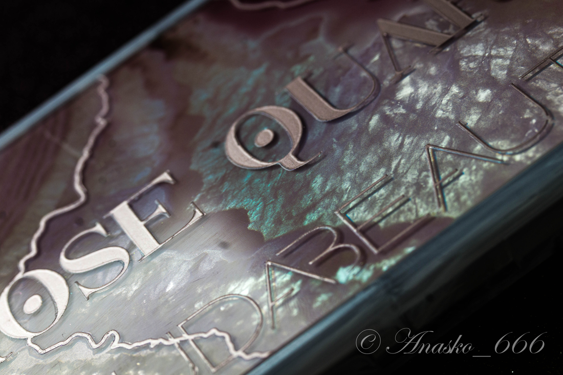 В первую очередь не могу не отметить крутое оформление: перламутр палетки очаровательно переливается при поворотах.