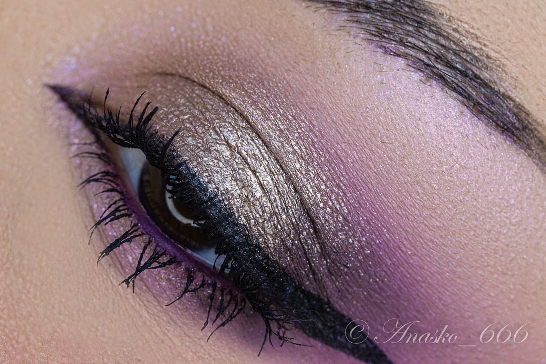 - вазилиновое недоразумение: вот честное слово, для меня до сих пор загадка как и для чего он в палетке. Те кто считают, что на него надо наносить сияшки, скорее всего обладатели беспроблемных век, с которых не катается ничто и никогда. Я если такое намажу на себя, не прохожу и 5 минут с макияжем. Пробоала наносить на губы, тоже сомниетельно. В общем, не сердитесь на меня, но в обзоре сей оттенок не задействован ни разу.