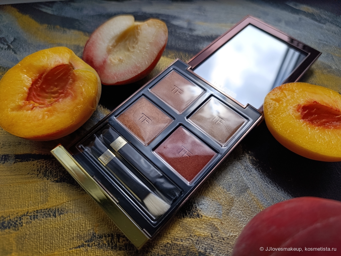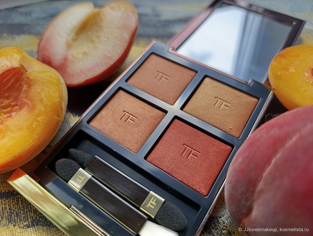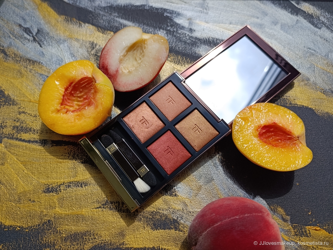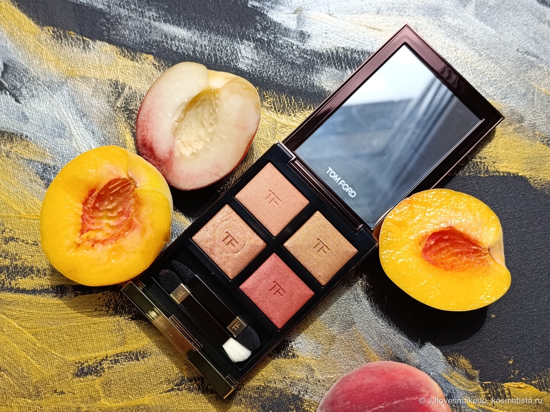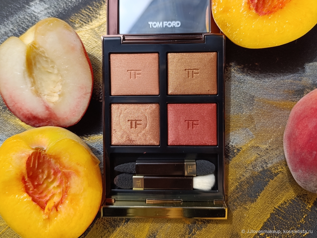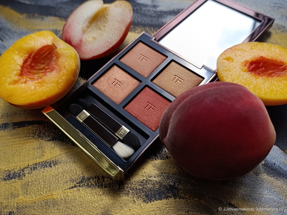 Всем привет! Я очень хотела еще одну четверку теней от Tom Ford, на этот раз теплую. И так случилось, что мне подарили бескомпромиссно теплую, да что уж там, откровенно оранжевую Eye Color Quad в говорящем оттенке Peach Dawn. И сейчас я покажу все, что можно получить от этой палетке обладателям теплых оттенков кожи (спойлер: очень много, я использую ее также как румяна и хайлайтер).