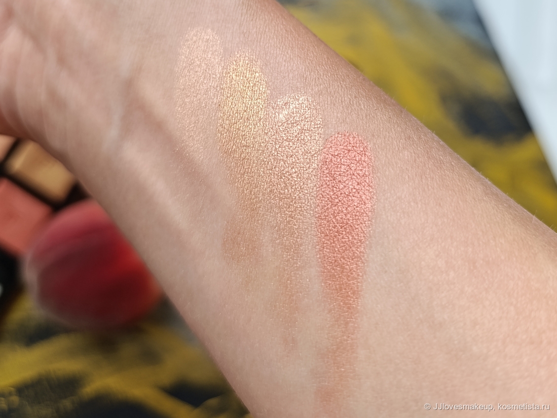 Ничего уникального в цветах нет, ничего экстраординарного в формуле тоже, просто хорошая палетка с замечательными техническими характеристиками. Для обладателей теплой, желательно смуглой, кожи, зелёных или карих глаз, она идеальная. Мне оттенки, нанесенные сухим способом, подходят только под загар, а вот влажным способом я могу носить ее в любое время.