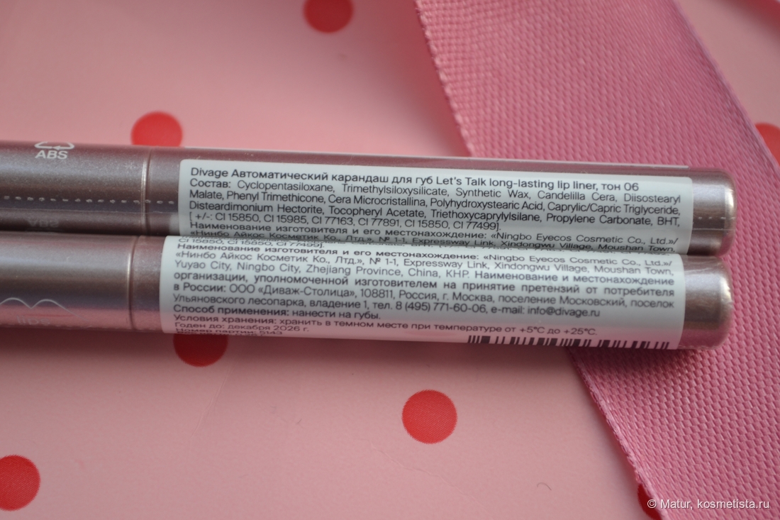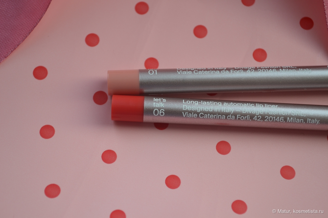 Итог. Карандаши для губ Divage Let's Talk Long-Lasting Lip Pencil красивые и стойкие, удобные в нанесении и приятные в нОске. Большего мне и не надо. С удовольствием ими пользуюсь, не скажу конечно, что отложила все остальные карандаши, но из-за того, что они автоматические рука к ним чаще тянется.