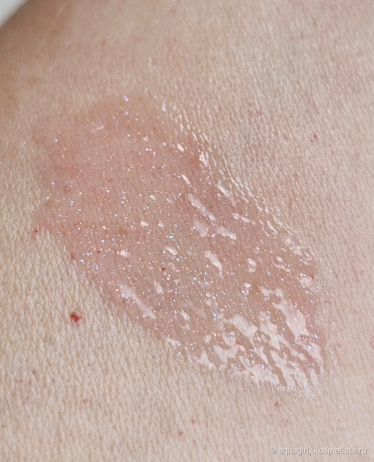 Блеск даёт очень хороший глянец. Кроме того, в нём большое количество мелких сияющих частиц розового, голубого, золотистого цвета.