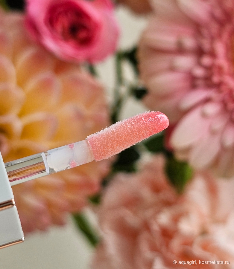 В ассортименте марки достаточно много продуктов для губ. От этого блеска я жду бриллиантового мерцания и ухода. За питательные свойства отвечает ключевой ингредиент марки — экстракт георгина.