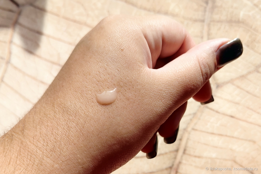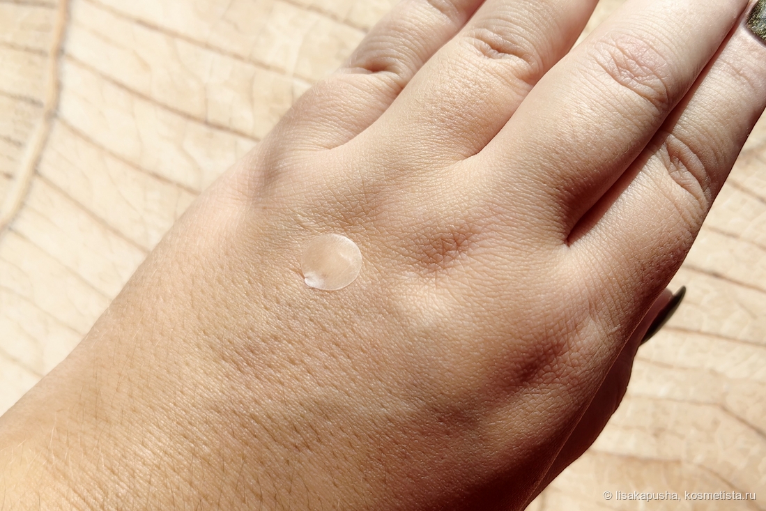 Текстура продукта кремо-гелевая. Оттенок полупрозрачный белесый. Аромат косметический.