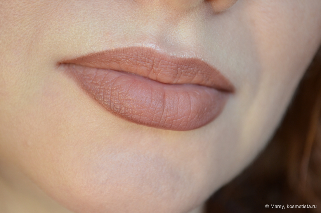Муссовая помада, интересный оттенок, лежит почти незаметно, стойкости мало.
