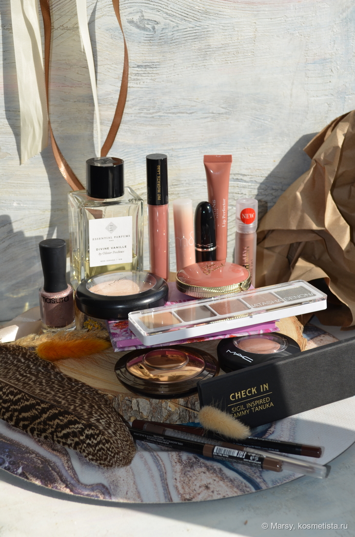 В этом году мне захотелось собрать косметичку в бежево — кремовых оттенках, а макияжи делать максимально дымчатые и простые, современные смоки, плавные тушевки. Видимо устала от яркости за лето и предвкушала огненный сезон, традиционный для меня в конце октября. Но, в итоге, так ничего и не собрала. Делала пару макияжей и все. Сезон бургунди тоже пропустила и пользовалась всю осень этой косметичкой, лишь изредка доставая рандомные палетки.