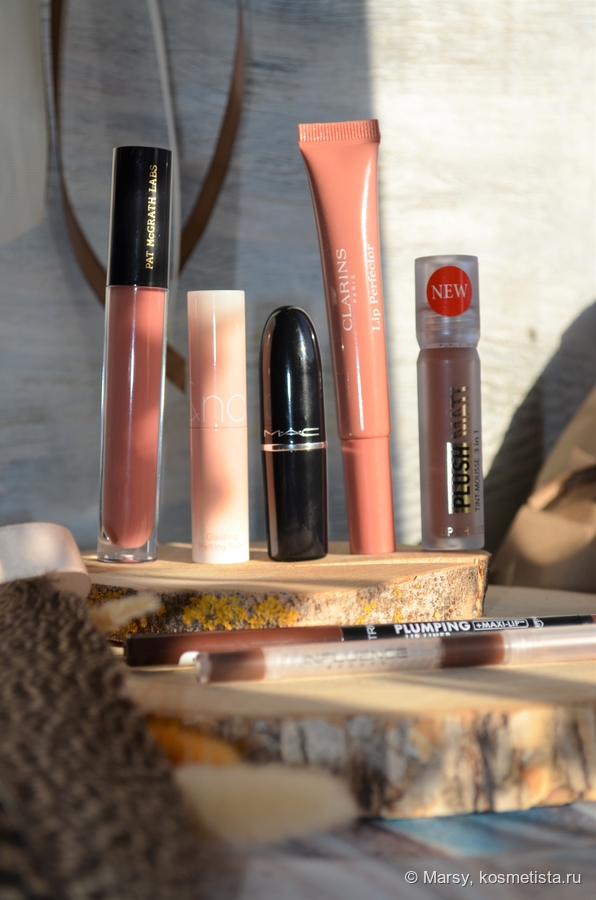 На губах карандаш 11 Холодный коричневый и блеск 6 Rosewood shimmer.