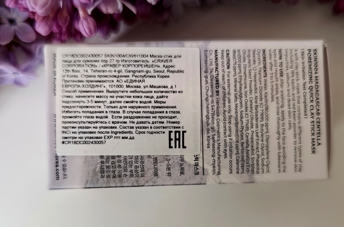 Применение. Маску нужно нанести на те участки кожи, которые склонны к повышенной жирности и где есть расширенные поры. Далее маску нужно продержать на коже 5 минут и смыть теплой водой. Поскольку в составе есть каолин нельзя допускать высыхание маски на коже, это чревато микротравмами.