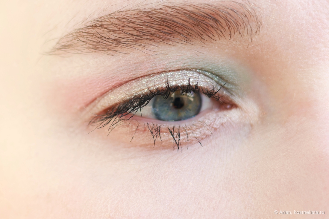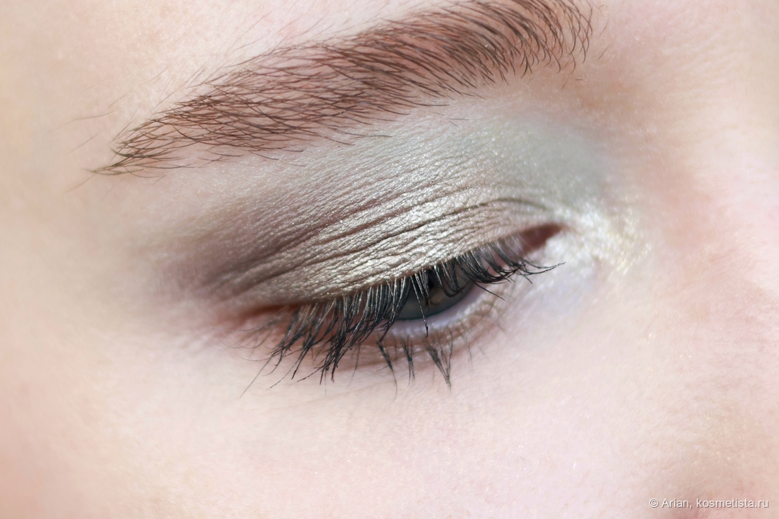 - palladian — более холодный жемчужный сатин, на веке уходит в синеву. Редко его беру, хотя по факту придраться особо не к чему.