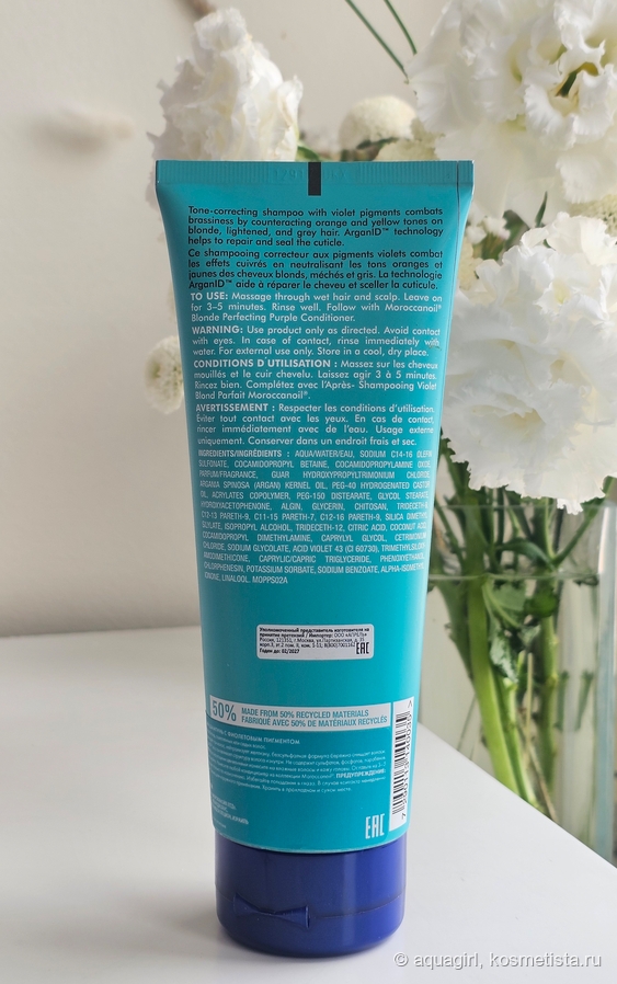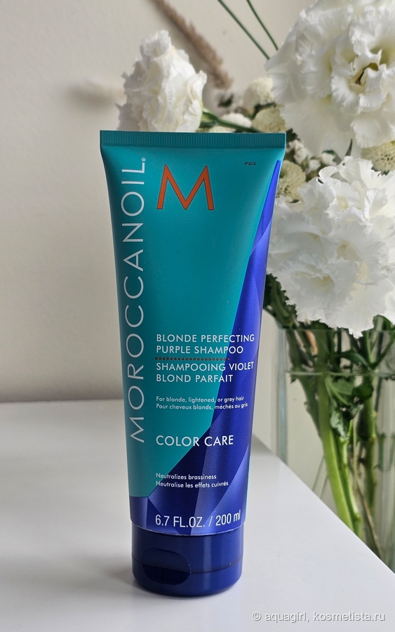 Что мне не понравилось, так это то, что Moroccanoil Blonde Perfecting Purple Shampoo очень сильно сушит волосы.