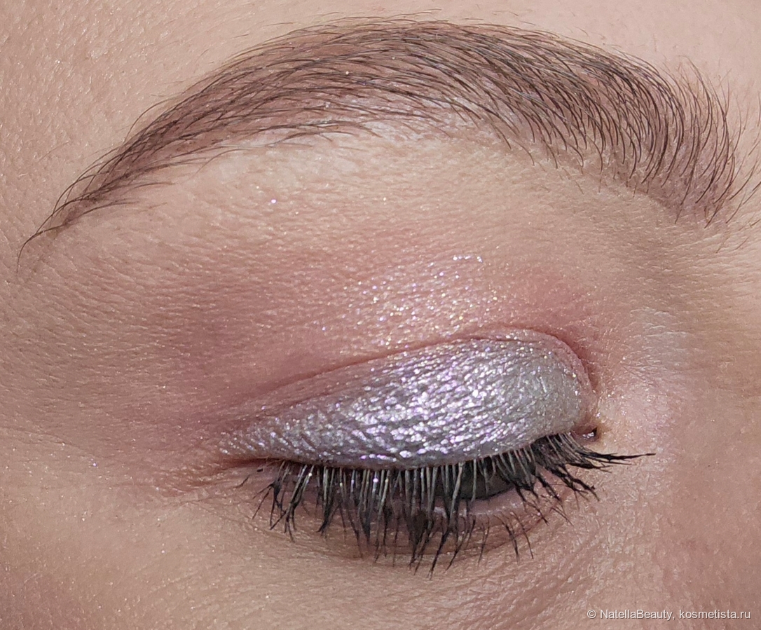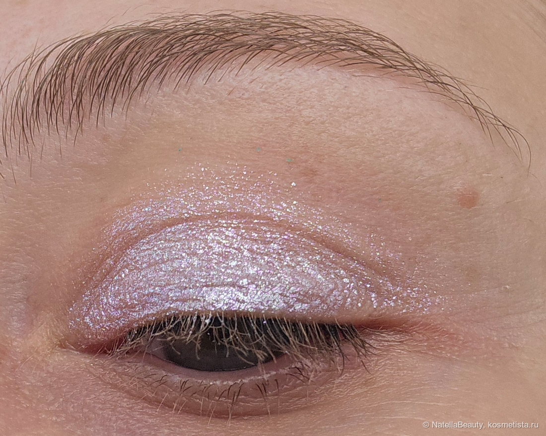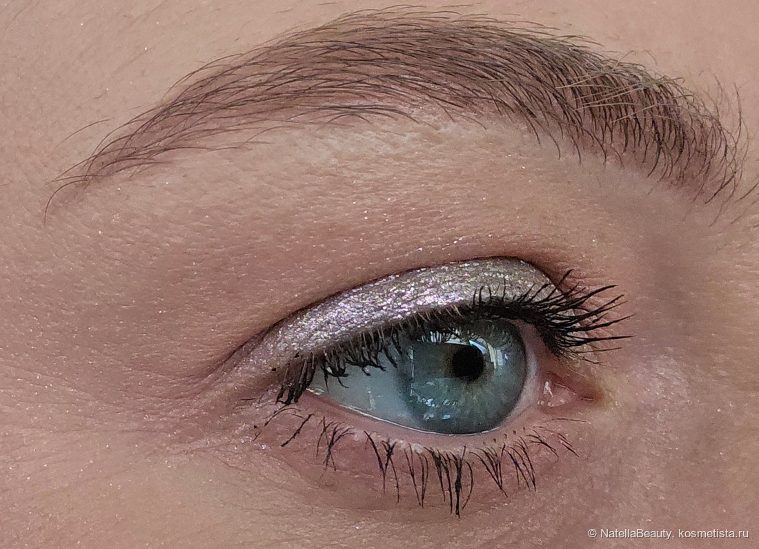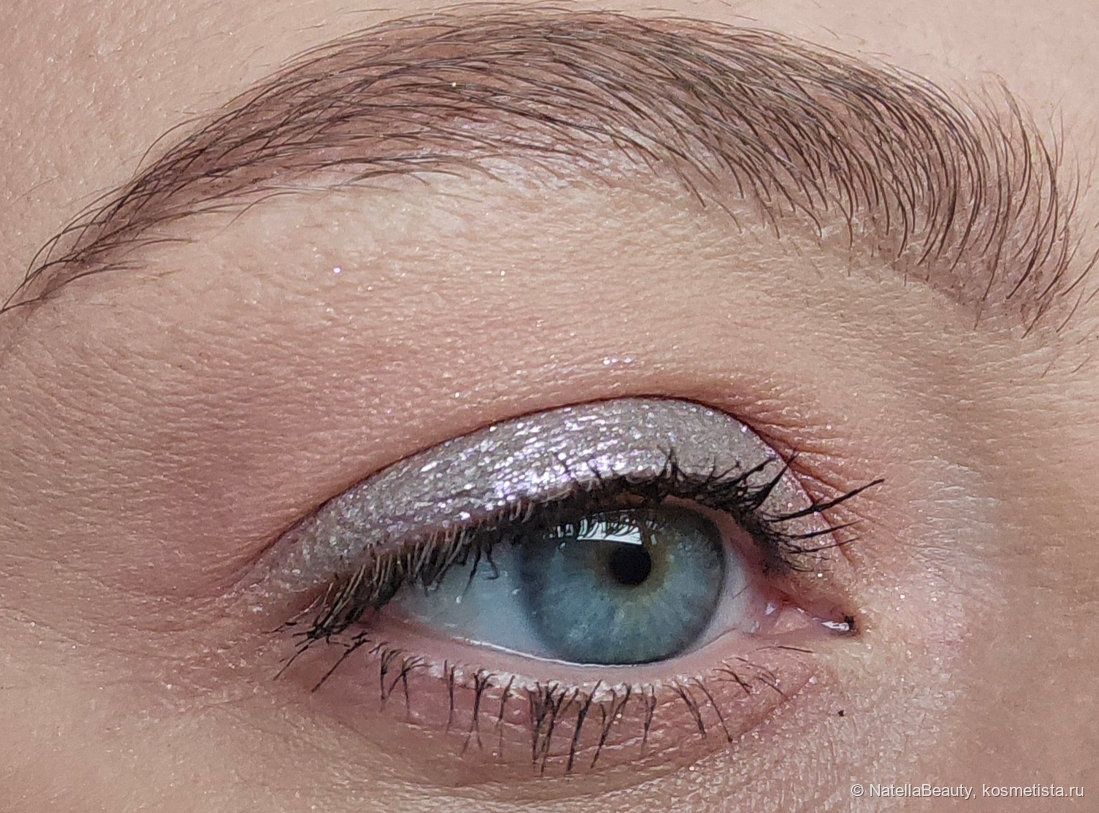 Блестки здесь крупные, будто фольгинированный эффект получается на веке.